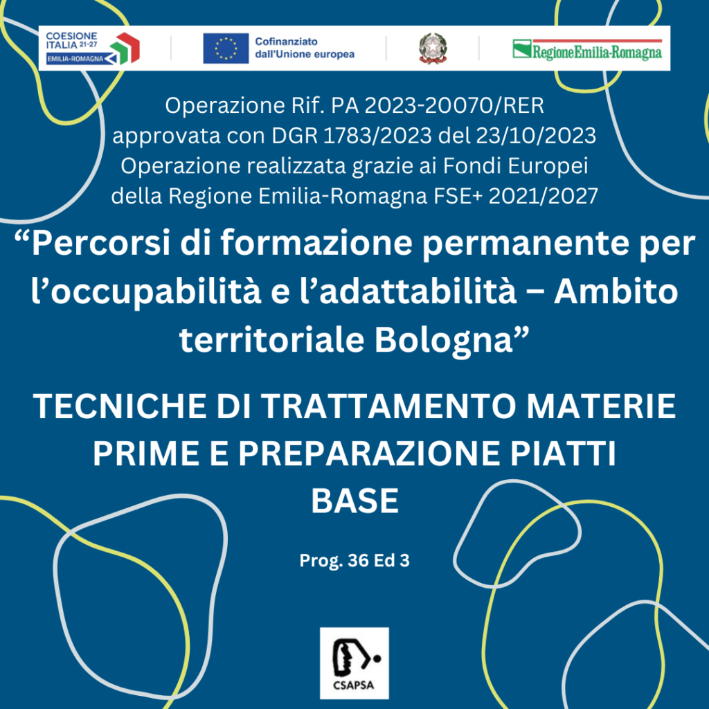 PERCORSI DI FORMAZIONE PERMANENTE PER L’OCCUPABILITA’ E L’ADATTABILITA’ – TECNICHE DI TRATTAMENTO MATERIE PRIME E PREPARAZIONE PIATTI – BASE