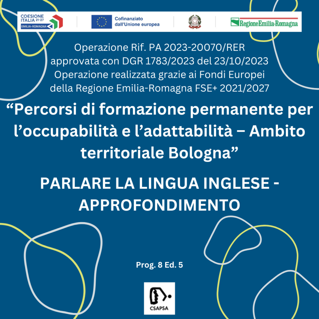 PERCORSI DI FORMAZIONE PERMANENTE PER L’OCCUPABILITA’ E L’ADATTABILITA’ – PARLARE LA LINGUA INGLESE – APPROFONDIMENTO