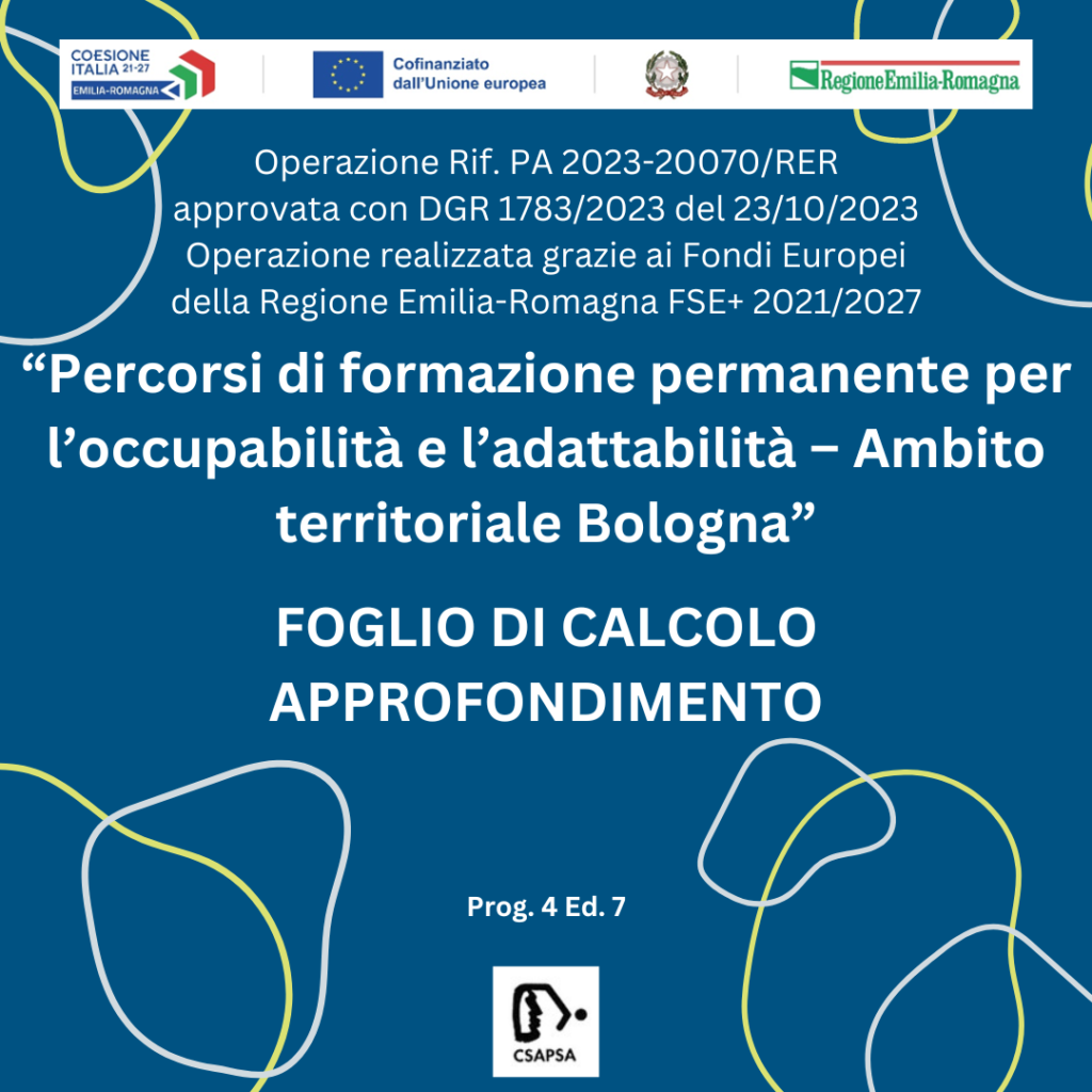 PERCORSI DI FORMAZIONE PERMANENTE PER L’OCCUPABILITA’ E L’ADATTABILITA’ – FOGLIO DI CALCOLO – APPROFONDIMENTO