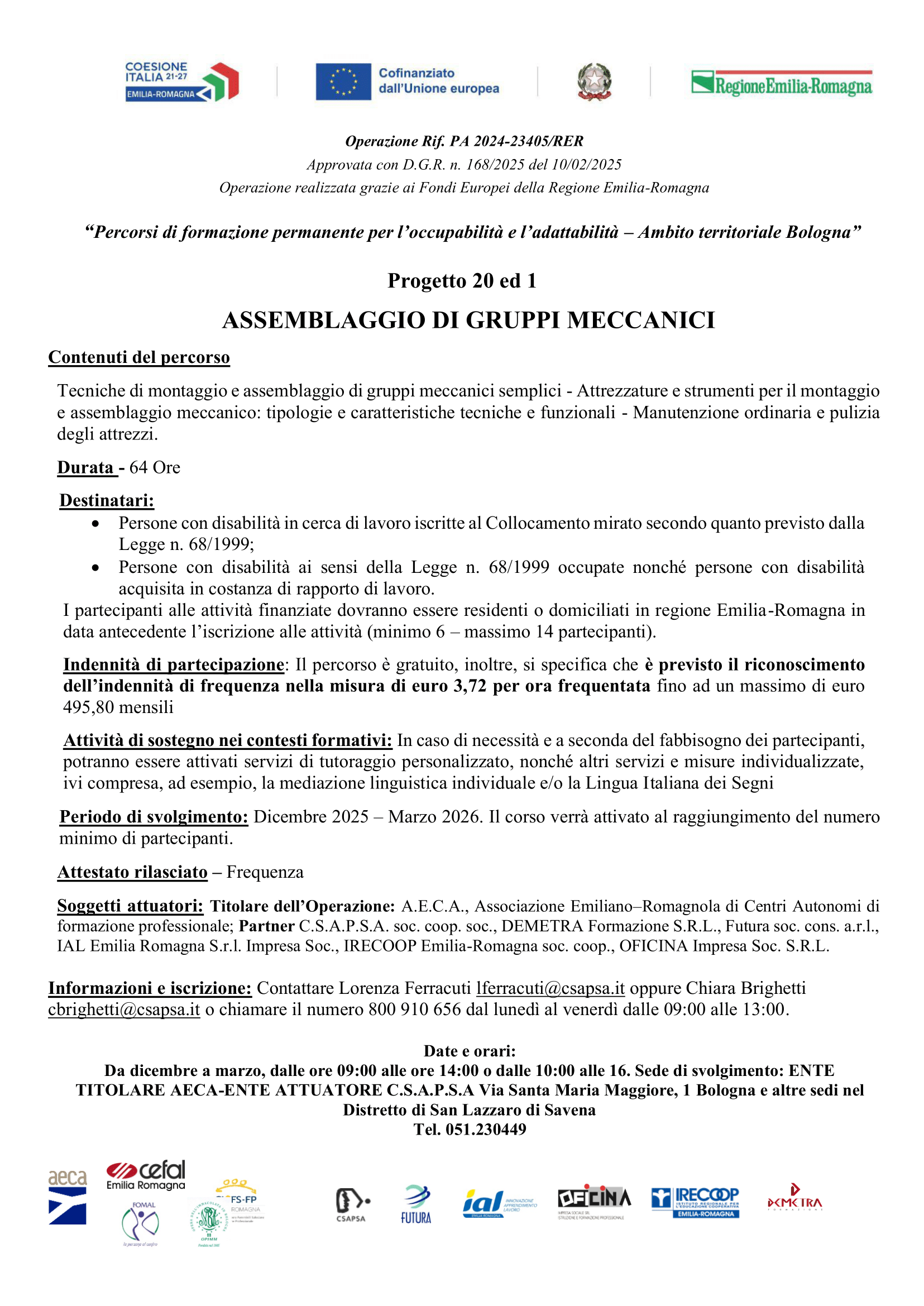 Programma dell’Operazione 2024-23405/RER “Percorsi di formazione permanente per l’occupabilità e l’adattabilità – AMBITO TERRITORIALE BOLOGNA”