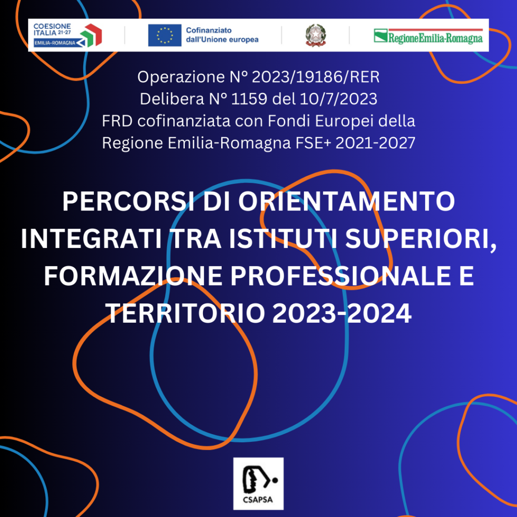 C.S.A.P.S.A. è ente titolare e attuatore dei “Percorsi di orientamento integrati tra Istituti Superiori, Formazione Professionale e territorio 2023-2024”. L’operazione è realizzata grazie al Fondo Regionale Disabili e cofinanziata con i Fondi Europei della Regione Emilia-Romagna, è rivolta a studenti certificati (L. 104/92). Si propone di realizzare, in accordo con i referenti scolastici – Dirigenti, […]